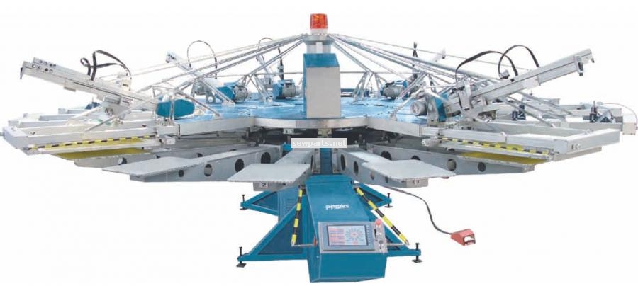 YH series is our high-tech automatic textile printers.Aimed for higher production output and faster recovery of investment.Adopting automatic controller system with combination of mechanical,electrical and pneumatic control and together with screen printing principle,leading to the superior printer in any print workshop.YH series is available in 4,6,8,10,12,and 14-color models with 500x700mm image area,all of which can print on T-shirts,garment materials,nonwoven,textile,cotton,paper boards,glassplates,PVC/PU boards and fabric sheets & bags etc.YH series feature servo-driven indexers, AC motor driving print heads and pneumatic lifting and lowering turntable.