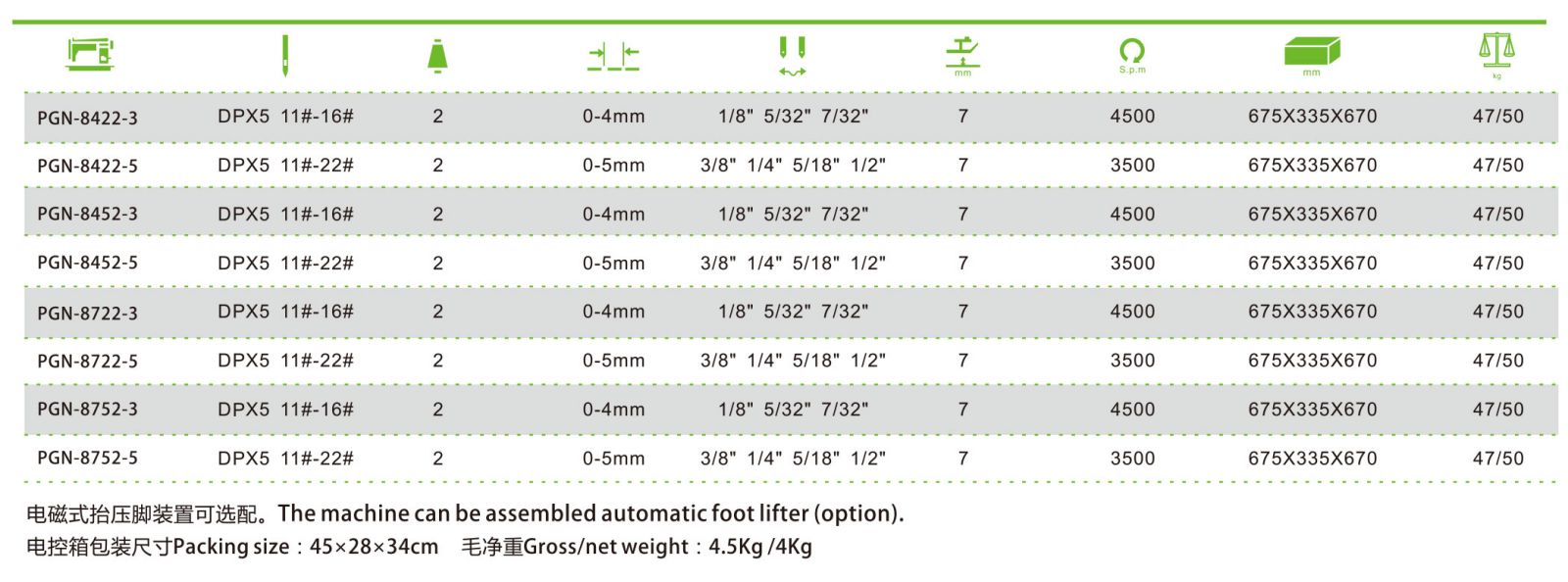 • Product Name: PGN-8422-3/5 Direct-drive high-speed double-needle mini-oil Lockstitch Sewing Machine Series