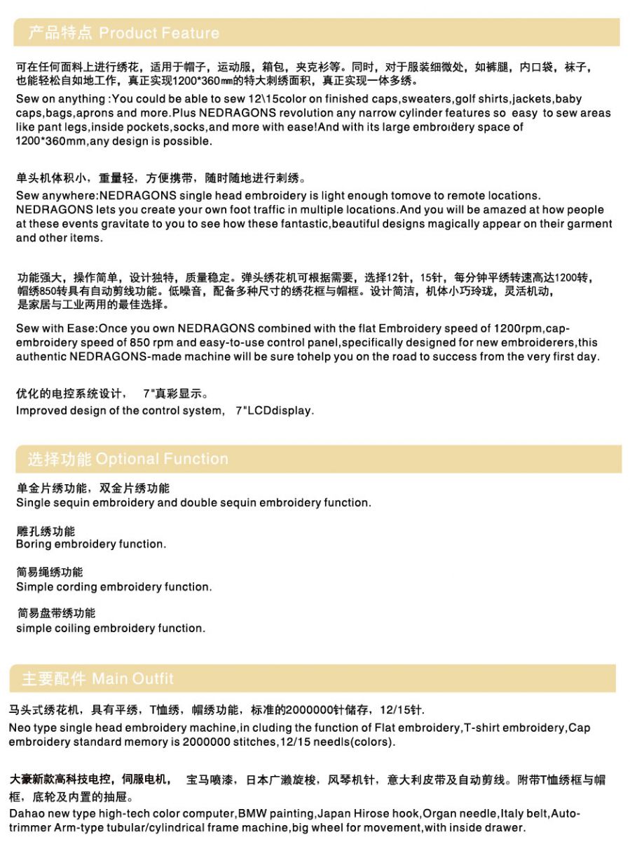 • Product Name: PGN-1501PT-12H/ Single Head Compact Embroidery Machines Series
