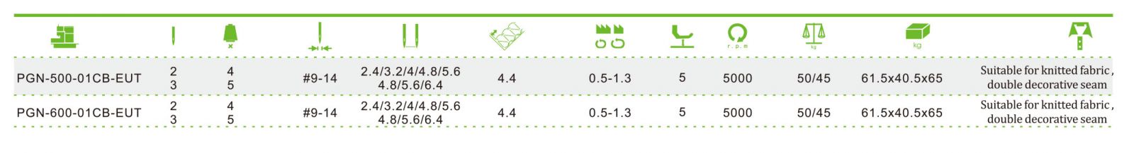 This machine based on PGN-600-EUT interlock sewing machine and realize automatic thread trimming, automatic thread wiping, automatic thread knotting and automatic presser foot lifting by servo motor controller. Energy saving by 50% degree and double the labor productivity. Servo motor is installed on the back of machine head and it is with automatic oil lubrication system.