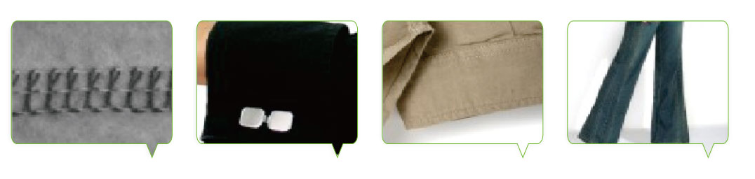 The machine can realize the hem stitch, inverted suture , roll collar, fixed joint. "No Pollution" mechanism, crank connecting rod type needle bar mechanism, a differential feeding gear, driven conveying system and other innovative design in one, both fabric thickness, can be flat, neat and perfect sewing effect, low noise, vibration is reduced to a minimum, durable.